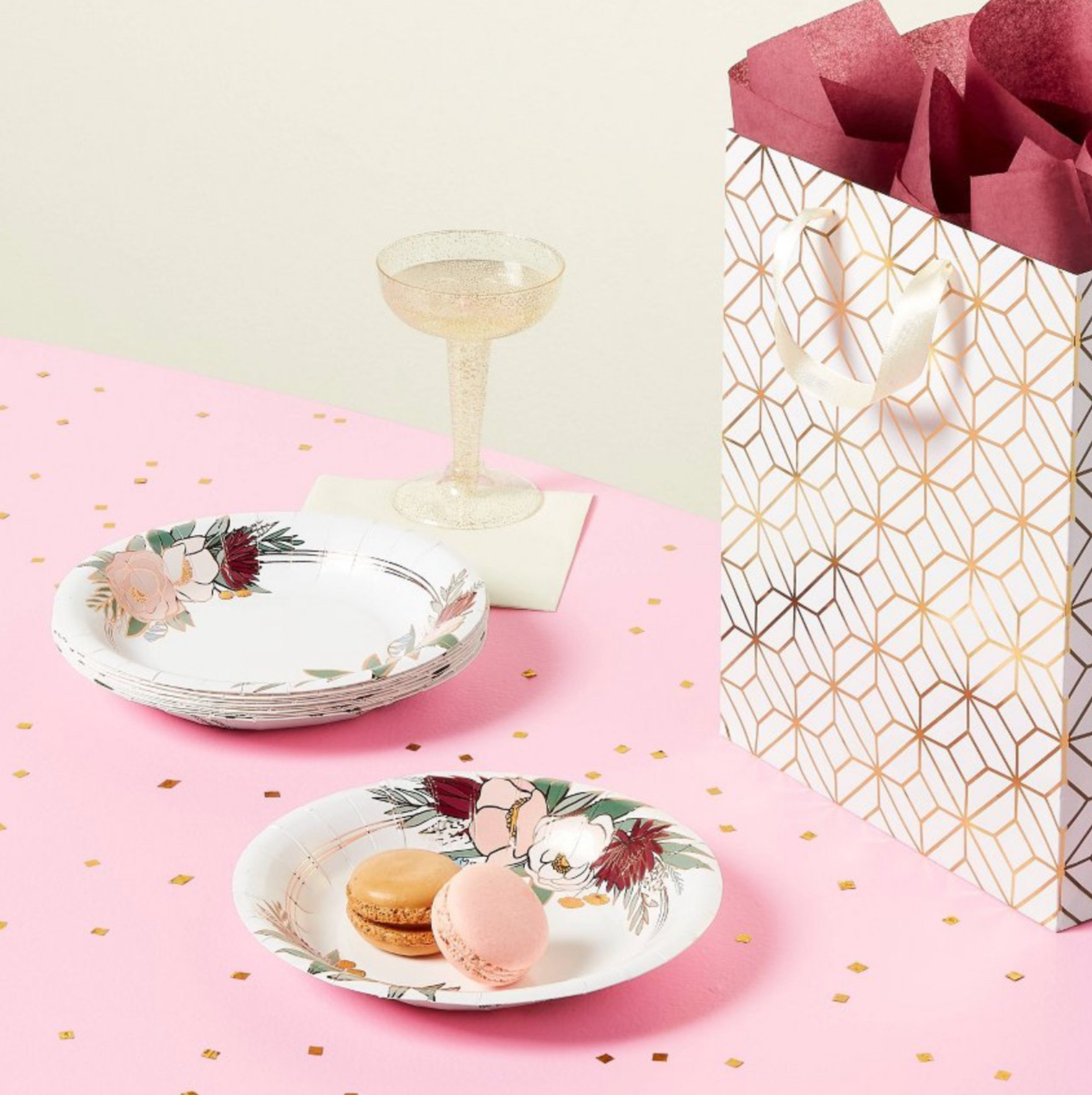 A soft, floral party collection accented with rose gold—made for wedding showers, celebrations, and elegant entertaining.