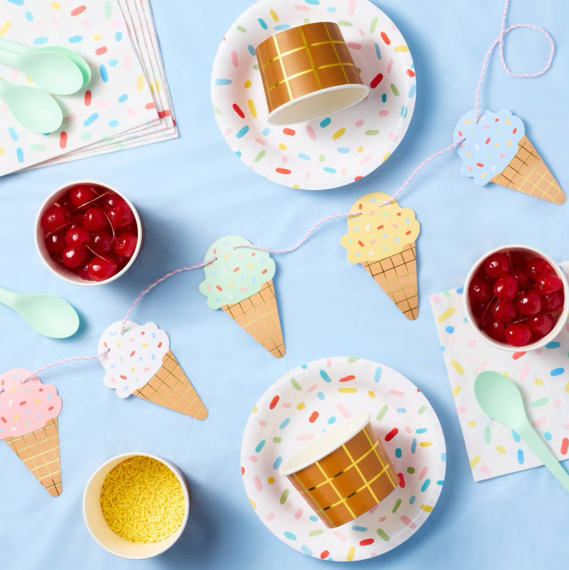 A playful ice cream–themed paper party designed for sweet treats, bright colors, and summer-ready fun.